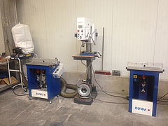 Für die effiziente Bearbeitung von kleineren Frästeilen stehen uns noch 2 mobile Tischfräsen mit jeweils 3 Frässpindeln von RUWI für eine Vielzahl an Finish-Aufgaben zur Verfügung.