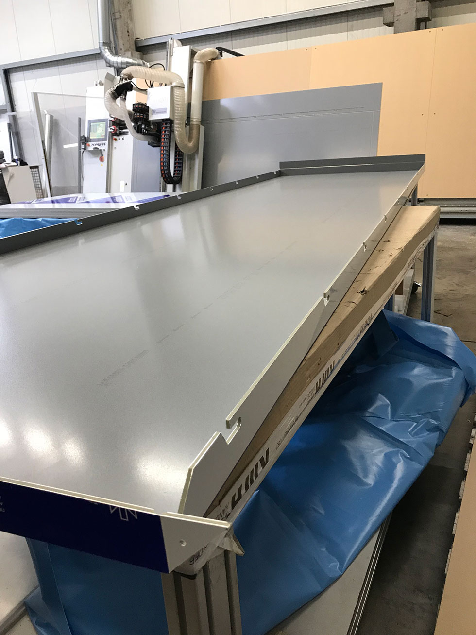 Mit unserem Alu-Ranger als Vertikales Bearbeitungszentrum mit einer Bearbeitungsfläche von 2100 x 6100mm und dazu passender Kantenbearbeitungsfräse Alu-Bender sind wir sehr speziell in der Fertigung von Fassadenelementen, Kassettenfertigung für die Fassade und der Tischplattenproduktion für die Outdoormöbel-Branche unterwegs.