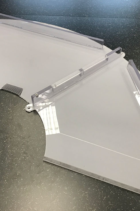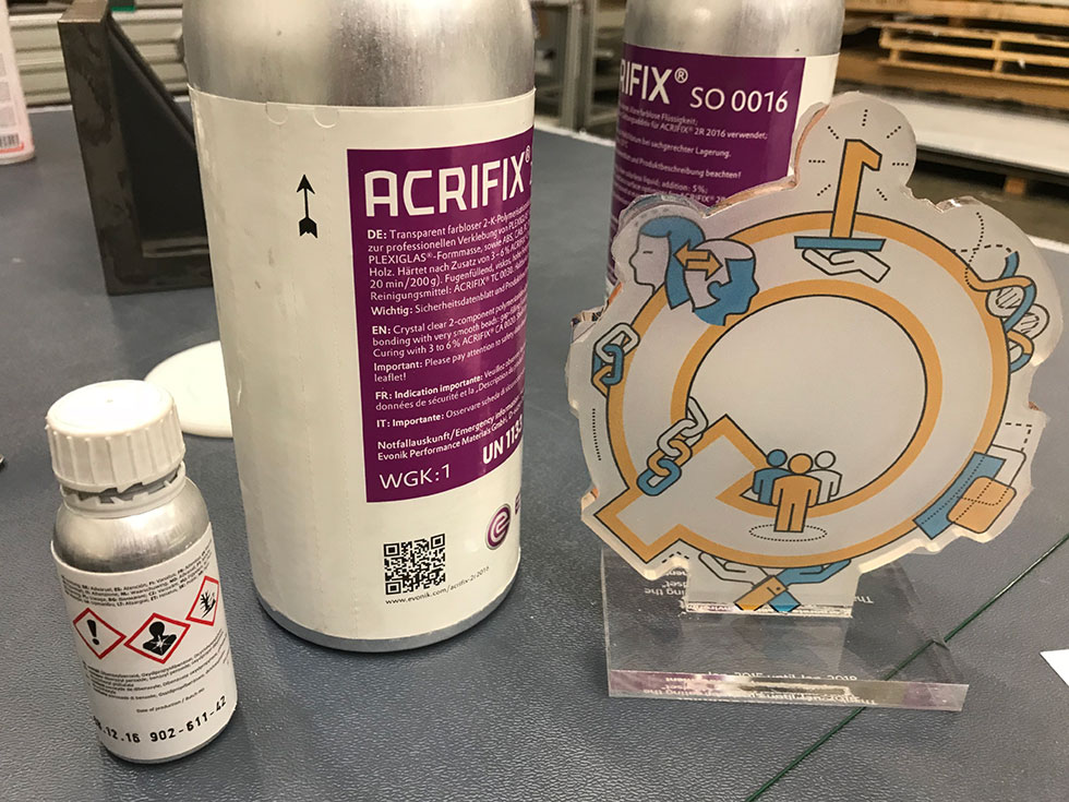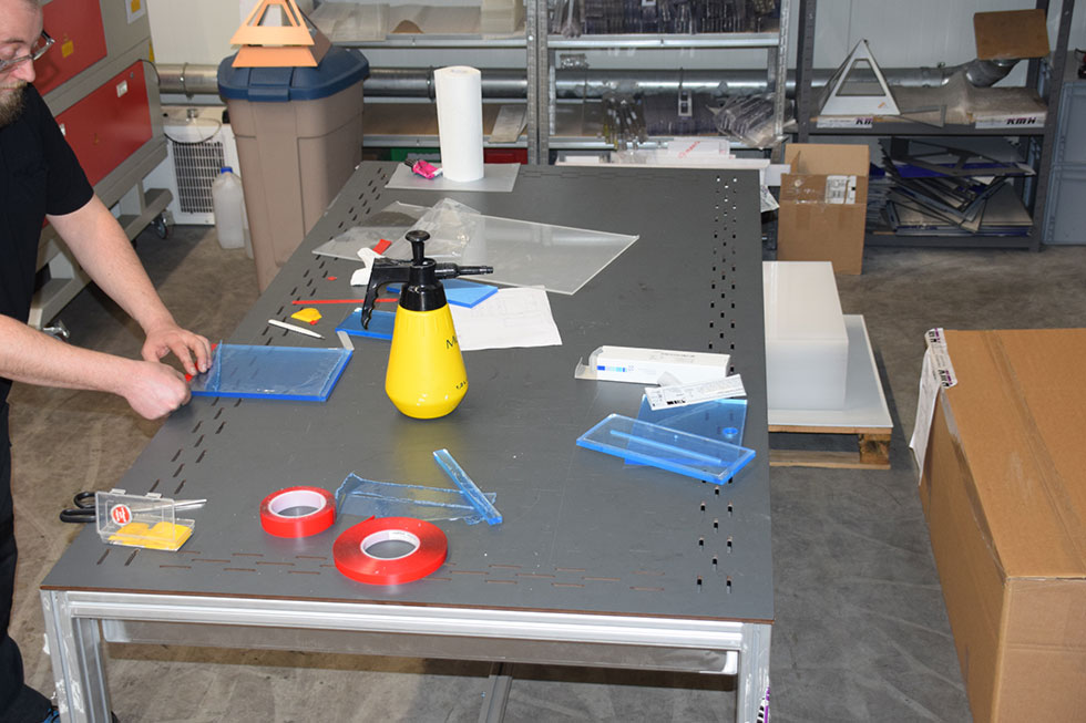Das Kleben von PMMA, PC, und PVC gehört bei der KMH mittlerweile zu den regelmäßig ausgeführten Anwendungen.