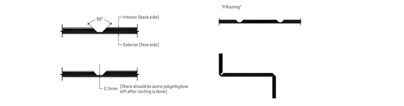 Die D2 Platte unterscheidet sich zur D3 lediglich in der Dicke der Deckbleche und besteht somit aus 2 x 0,2mm starken, bandbeschichteten Aluminium-Deckschichten und einem nicht toxischen Polyethylen-Kern.