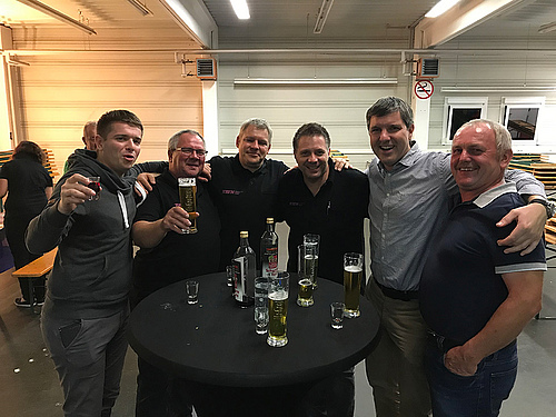 bot es sich an, das Jubiläum in den neuen Hallen zu feiern. Die gesamte Regensburger Mannschaft kam Freitag Nachmittag mit dem Bus angereist, um gemeinsam mit den Kollegen aus Bad Köstritz, Kunden und Lieferanten das Jubiläum zu feiern.