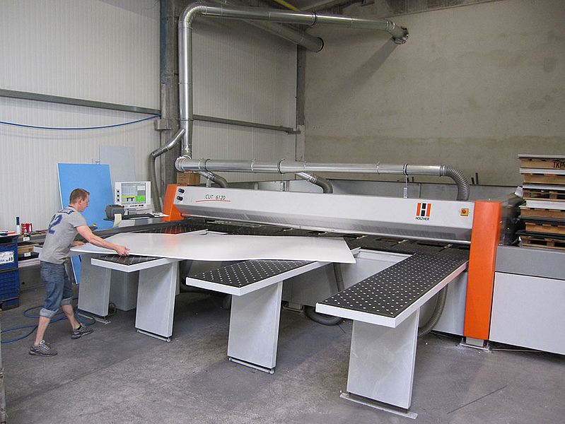 Mit der Inbetriebnahme unserer zweiten CNC Druckbalkensäge HolzHer Cut 6210 mit einer Schnittbreite und Länge von 4300 mm haben wir die Lieferzeiten entscheidend verkürzt und unsere Serviceleistungen maßgeblich verbessert.