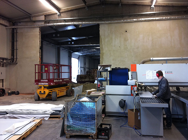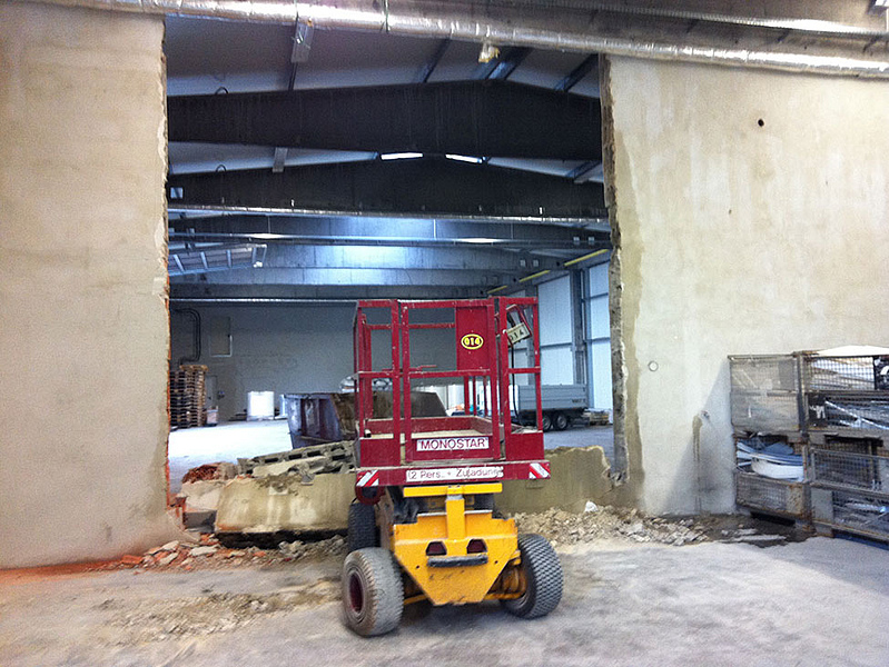 Das rasante Wachstum und der geplante Ausbau der Produktpalette führten Anfang 2011 in der KMH zur Entscheidung die Lagerfläche zu erweitern. Im April 2011 war es soweit und die Durchbrucharbeiten zu weiteren 600 qm wurden in Angriff genommen. Bei der Inbetriebnahme des dritten Hallentraktes wurde neben Sozialräumen auch ein neuer Arbeitsbereich für die Arbeitsvorbereitung, Logistik und Programmierung unserer CNC Anlagen geschaffen. Mit diesen Maßnahmen erhöhen wir deutlich unsere Leistungsfähigkeit um den Anforderungen aller Kunden gerecht zu werden.