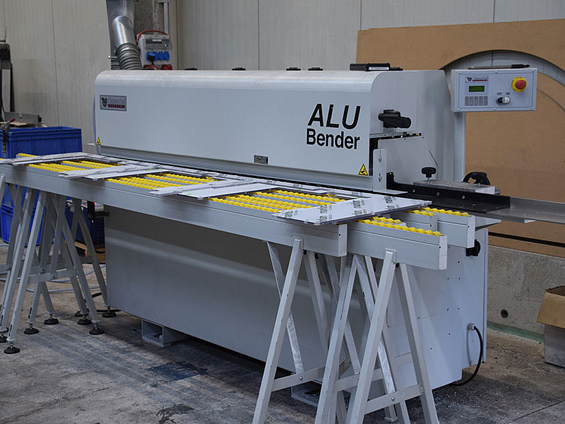 Zu diesem Zweck haben wir den Casadei AluBender in unseren Maschinenpark integriert. Einfaches oder doppeltes Umlegen von Kanten sowie eine Z-Kantung sind nun als Option zu den offenen Schnitt- bzw. Fräskanten möglich. Auch die Bearbeitung von HPL Platten mit Radien beidseits in einem Arbeitsschritt ist möglich. Eine schnelle und dadurch kostengünstige Alternative z.B. für Innenausbau, Möbelteile, Outdoor-Tische, Tischplatten etc.