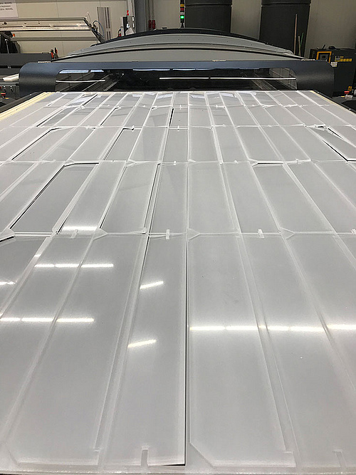 - Bearbeitungsfläche: 3080 x 2050 mm, für ein optimales Nesting bei PMMA.